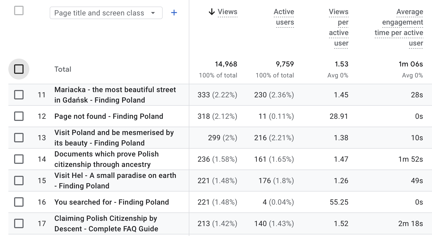 I must also add that I don’t shy away from writing long-form content that informs and engages readers. My longer posts on both Finding Poland and my other site, English Coach Online, tend to get the most pageviews.