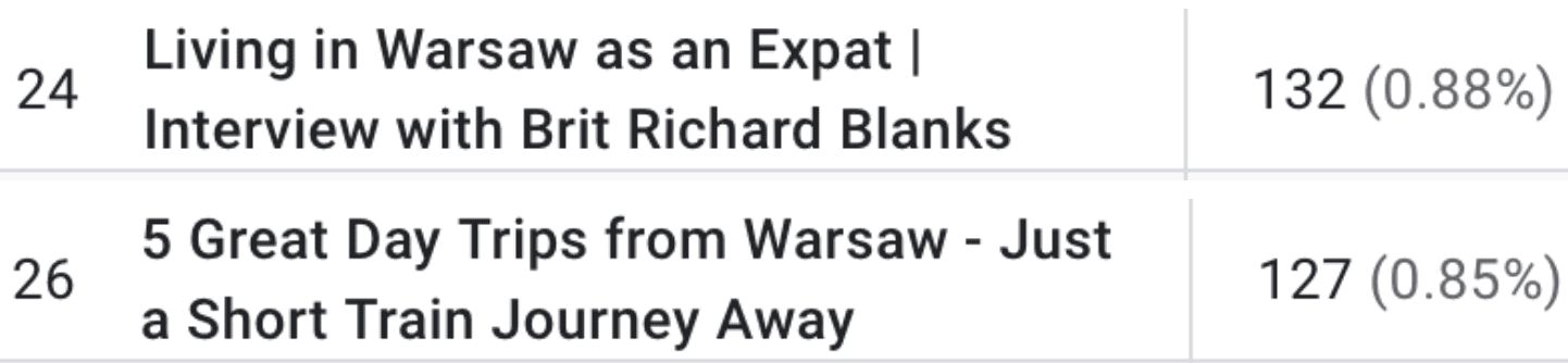 As for the post – What is cheap in Poland? – I believe I hit the jackpot when I used a question for the title of the post. Presumably, tourists and those looking to move to Poland would like to know how much bang for their buck they will get when it comes to eating out, food shopping and public transport etc. Using questions as both post and SEO titles is an effective strategy because questions are highly engaging and very specific.