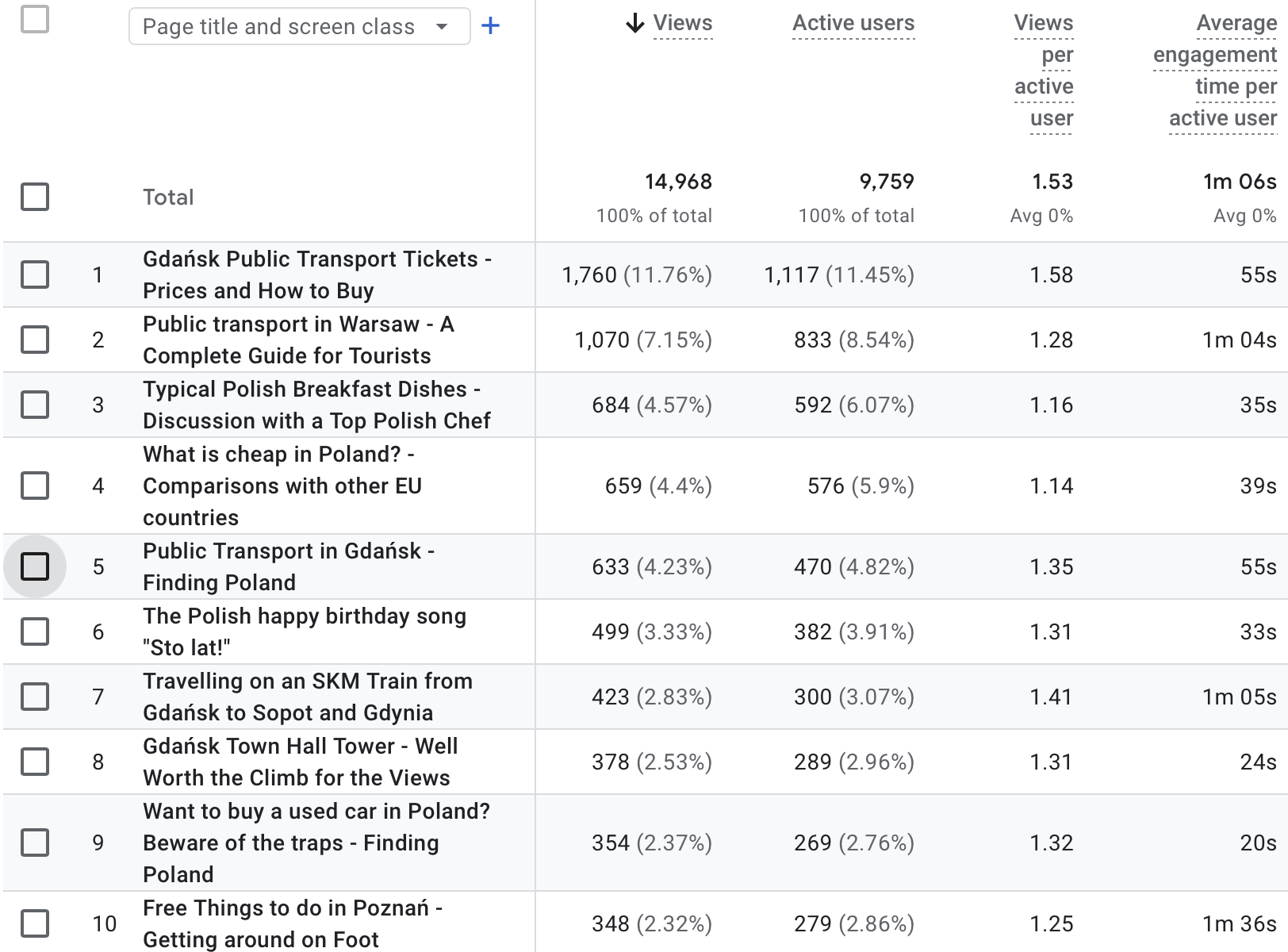 On May 1, 2024, I was humbled to see that my pageviews for April smashed the 10,000 mark for the first time. To be precise, Finding Poland got 10,923 pageviews. Having reached this milestone, I’d like to share some tips to achieve 10,000 pageviews a month based on strategies I’ve personally deployed in recent years: