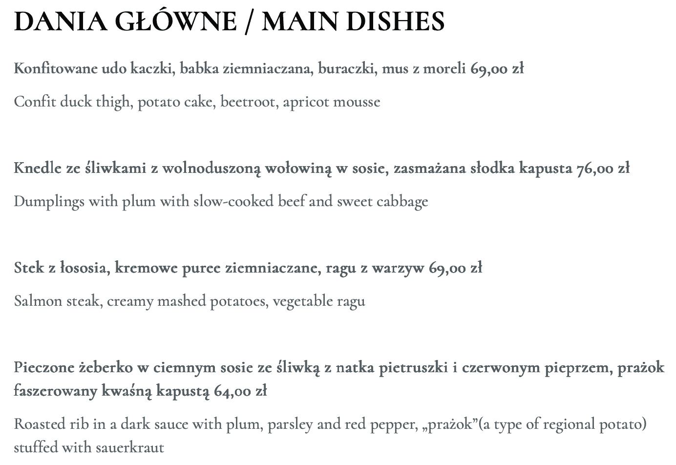 Let’s also consider two restaurants in Łódź. First of all, you can head to Cud Miód Fabryczna on Traugutta Street for tasty comfort food at amazing prices. The goose leg with sides, which I had several times throughout the second half of 2024, is a steal at 73,99 zł.